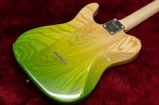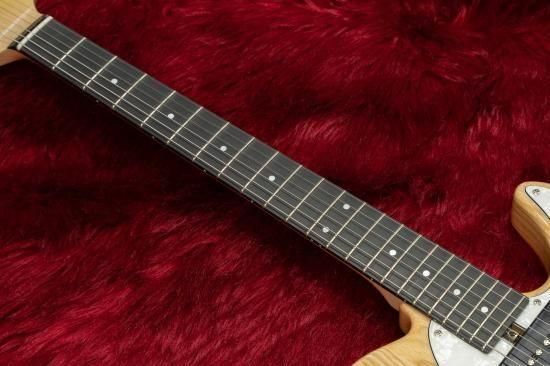 The body is made of ash, and the fingerboard is made of Richlite or maple.
