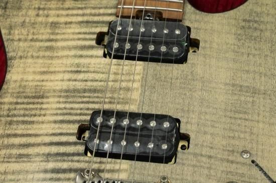 The instrument is equipped with two humbucking pickups.