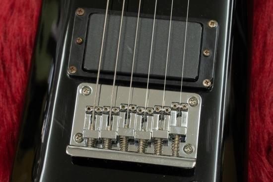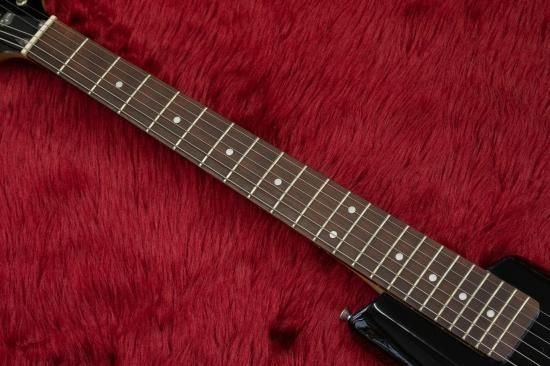 A compact electric guitar reminiscent of a Steinberger.