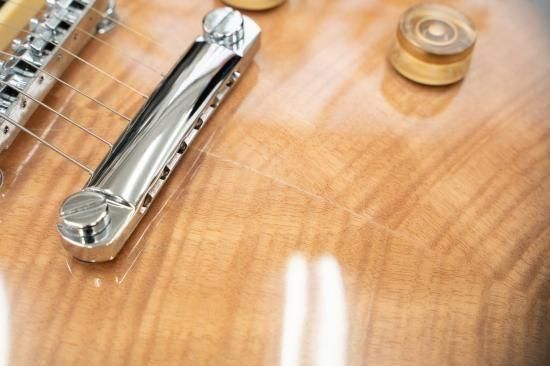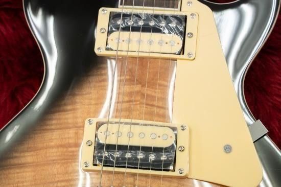 The body top appears to be flame maple, but it is actually flame mahogany.