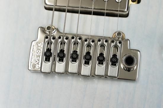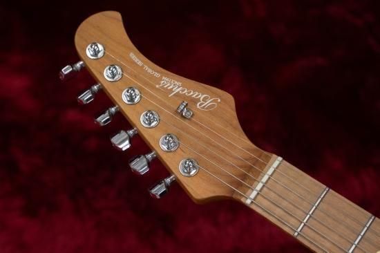 It features a Wilkinson bridge, a Graphtech TUSQ XL nut, locking tuning machines, and stainless steel frets, making it a carefully crafted instrument.