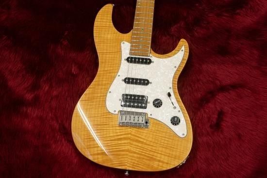 The beautiful flame maple body top and SSH pickup arrangement suggest a modern design.