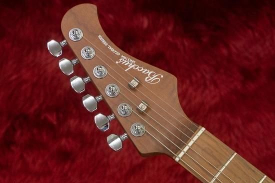Many aspects of this guitar are modern, including a Graphtec TUSQ nut, two-point tremolo unit, locking tuning pegs, and an SSH pickup layout.