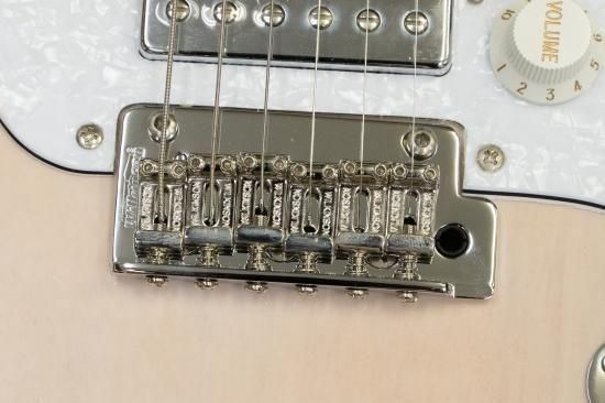 Many aspects of this guitar are modern, including a Graphtec TUSQ nut, two-point tremolo unit, locking tuning pegs, and an SSH pickup layout.