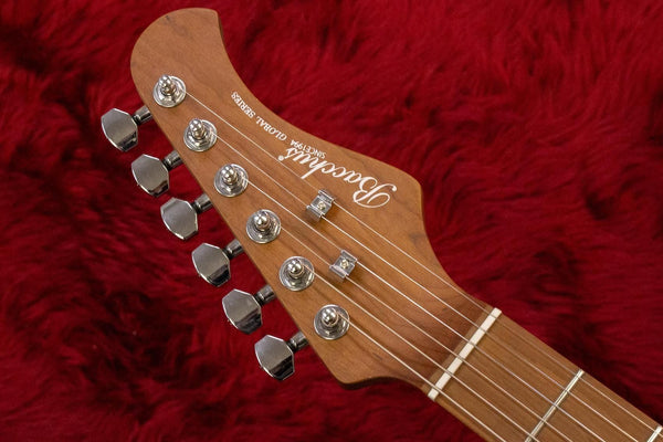 The neck and fingerboard are made of roasted maple, also known as thermowood.