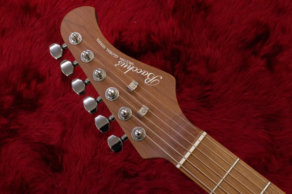 The neck and fingerboard are made of roasted maple, also known as thermowood.