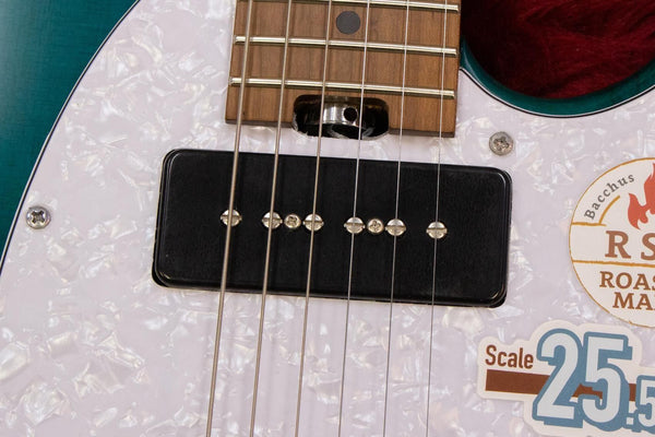 The front pickup features a P-90 pickup, producing a distinctively thick midrange sound.