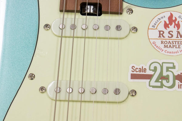 Its main features are a slightly shorter scale length and the use of roasted maple (RSM) for the neck and fingerboard.