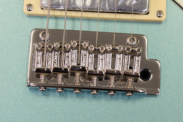 While standard Fender-style guitars are typically designed with a 25.5-inch scale, this guitar is designed with a 25-inch scale length.