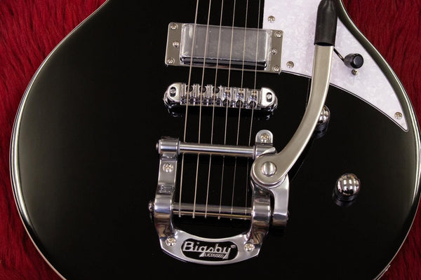 It is equipped with a Bigsby tremolo, allowing for smooth bending.