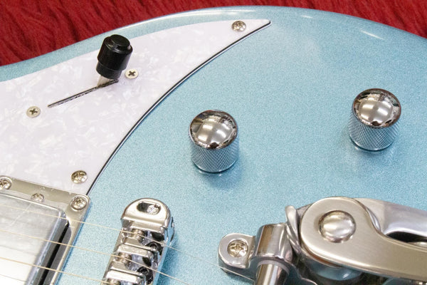 It is equipped with a Bigsby tremolo, allowing for smooth bending.