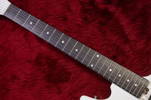 Its unique body shape features a hole called a monkey grip on the bottom, and it is equipped with a Bigsby-type tremolo unit.