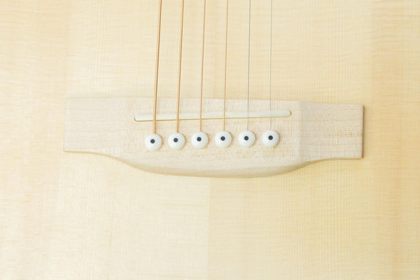 Although this is an entry-level acoustic guitar, it features a solid Englemann spruce top and maple back and sides, just like higher-end guitars.