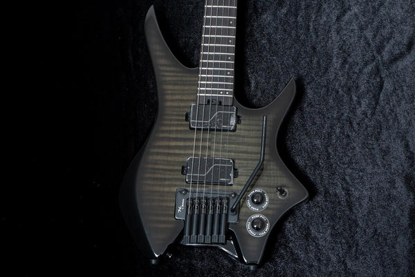 The N700 is their top-of-the-line model, featuring a flame maple body, custom tremolo bridge, Fishman pickups, ebony fingerboard, and laminated neck.