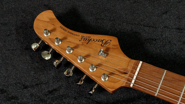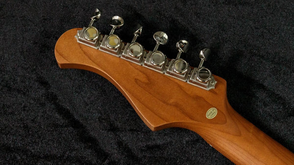 The tuning keys are locking for stability, and the bridge uses a two-point tremolo unit that allows for smooth arm movements.