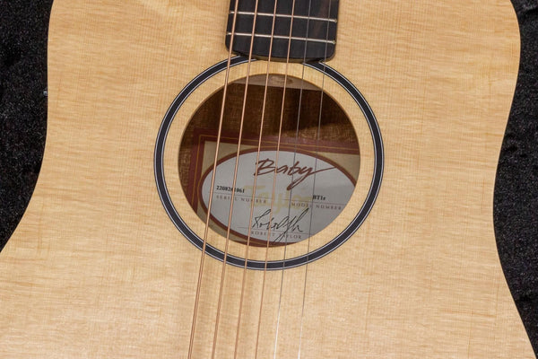 This model is Taylor's signature mini guitar, the Baby Taylor.