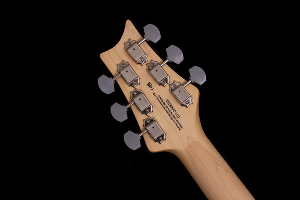 The tuning machines are traditional Kluson-type machine heads mounted asymmetrically.