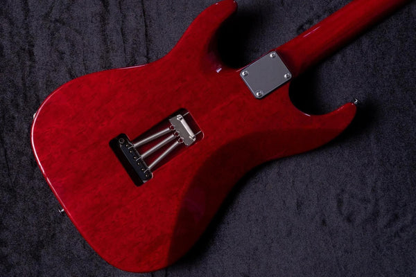 This hybrid design offers tuning stability comparable to a locking tremolo unit, while the playing feel is closer to a two-point support tremolo unit.