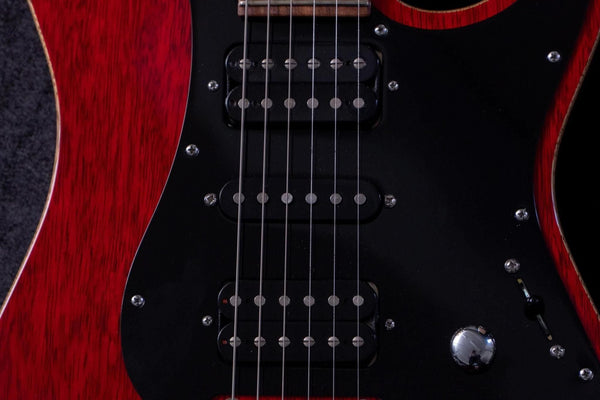 Aesthetically, the Trans Red finish highlights the wood grain, combined with scraped binding and a painted Bakelite pickguard, creates a sophisticated and eye-catching appearance.