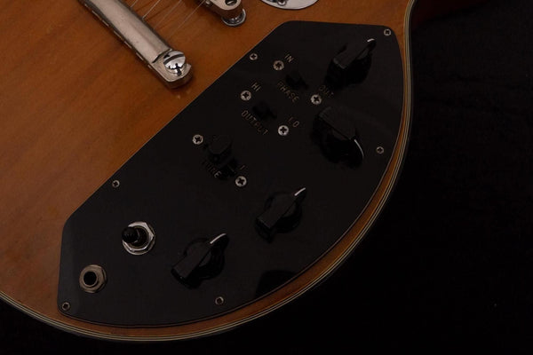 Controls include a decade switch, treble/bass adjustment, phase switch, and circuit bypass switch, allowing for a wide range of sound creation that is hard to believe is possible from a single guitar.