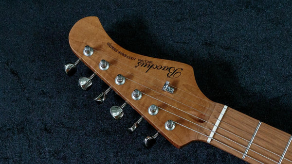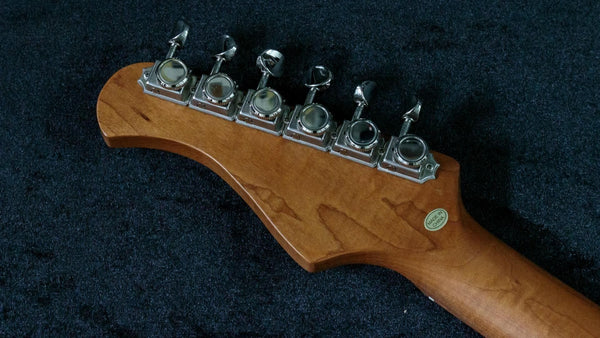 The tuning keys are locking for stability, and the bridge uses a two-point tremolo unit that allows for smooth arm movements.