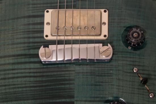 The tuning machines are PRS locking tuners, and the bridge is PRS's original Stoptail.