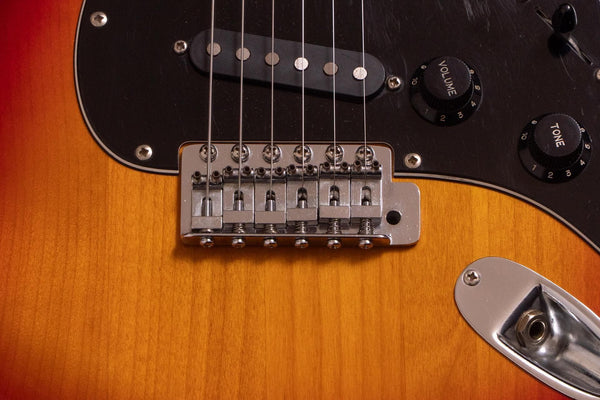 With features such as a large headstock and a three-point neck joint, it is inspired by the Fender Stratocaster of the 1970s.
