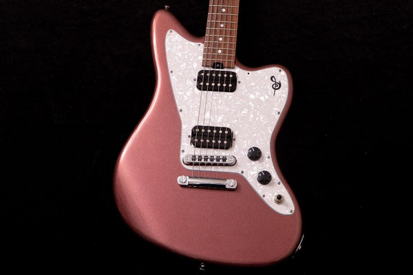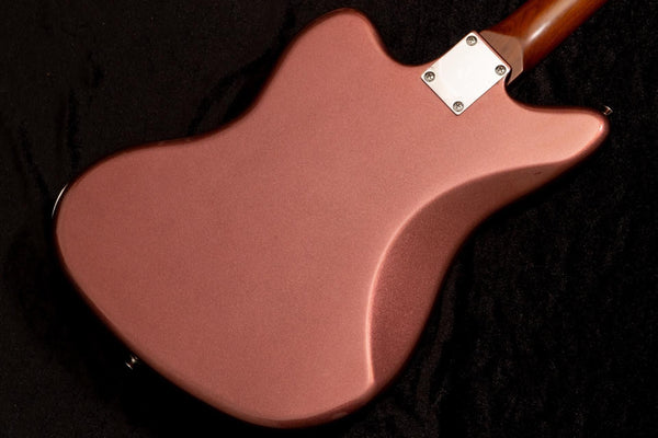 The body is made of alder, the neck is thermo maple, and the fingerboard is rosewood.