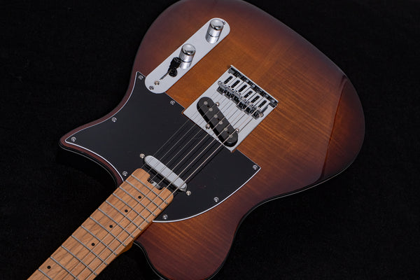 The distinctive body is constructed from Indonesian Mahogany and Flame Maple.