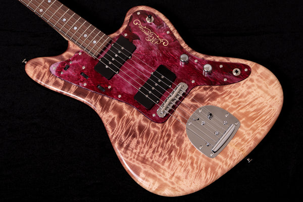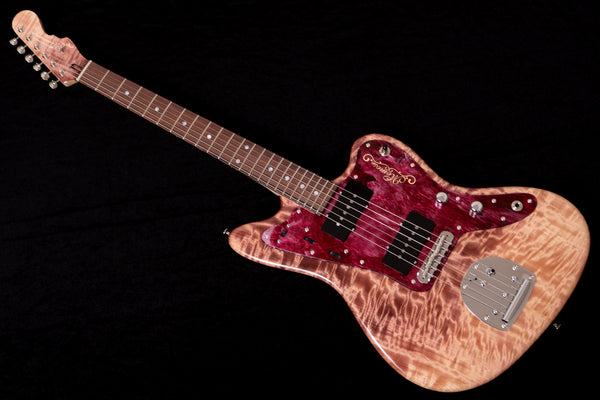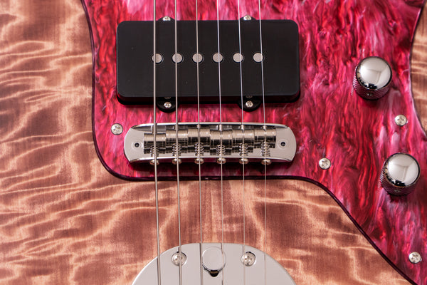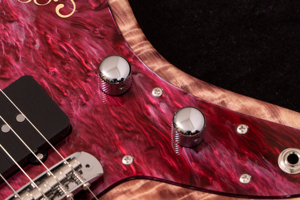 Finished in Vintage Wine Red to highlight this grain, combined with an acrylic pickguard in the same color, it possesses a bewitching and richly textured look.