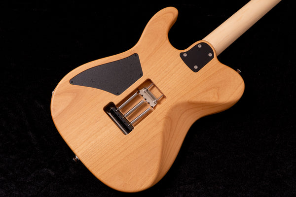 While it has a Telecaster-like body shape, it features modern elements such as a slightly arched top, back contour, two humbucker pickups, and a tremolo unit.