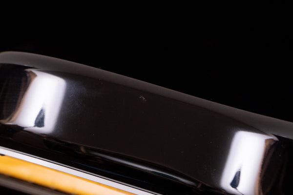 The neck shows slight bowing, but this is not problematic unless the string height is lowered excessively. Playability is unaffected with heights ranging from 2.2mm at the 6th string to 1.7mm at the 1st string.