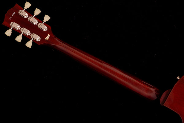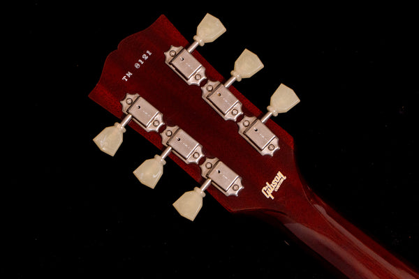 As a 2018 Gibson Custom Shop creation, it incorporates the latest specifications of the era: a spec tube-less truss rod, Custom Bucker pickups, and hide glue for wood joints.
