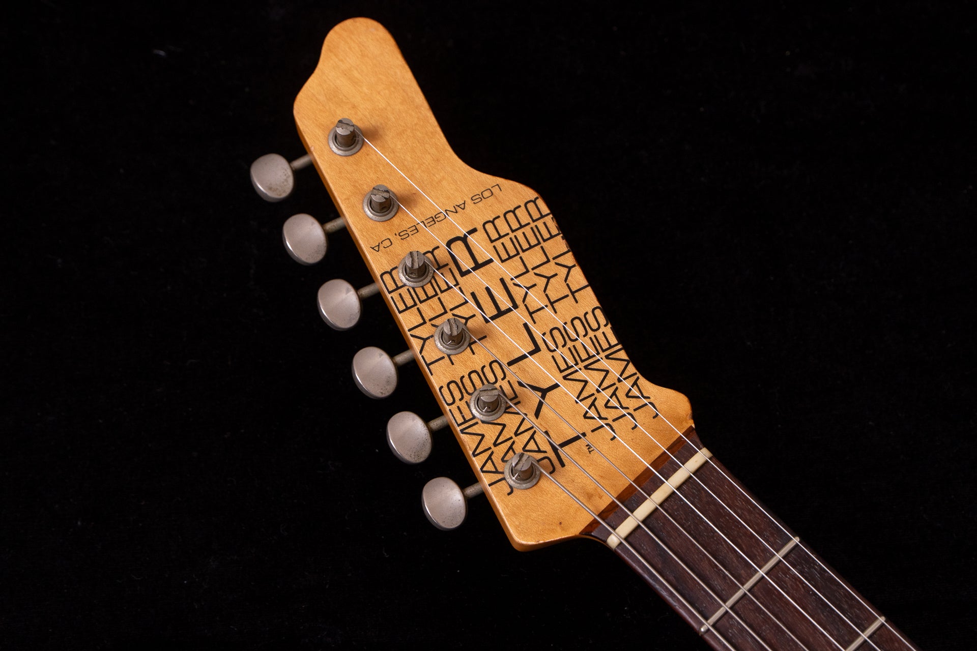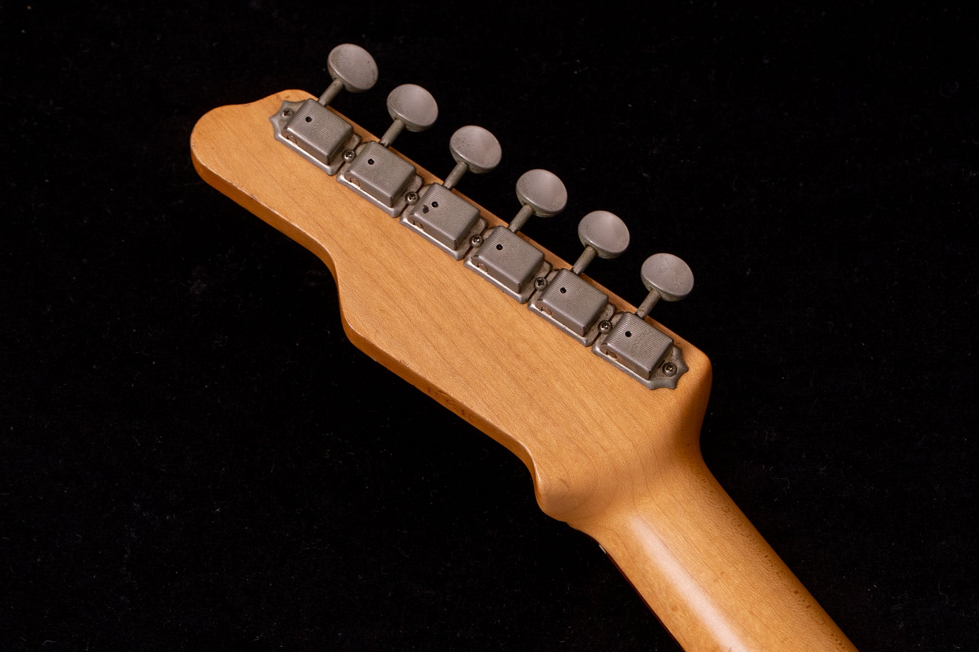 The pickguard shows burn marks from aging.