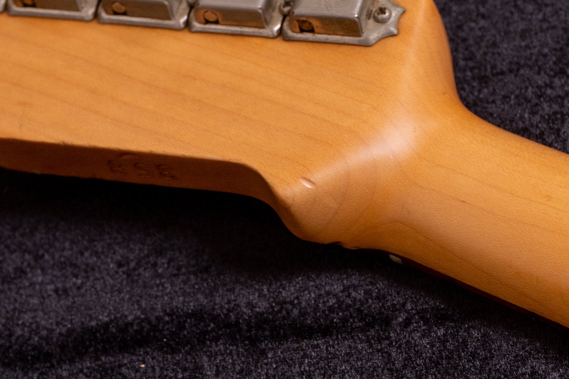 Multiple minor dents are visible on the neck back, but none significantly affect playability.