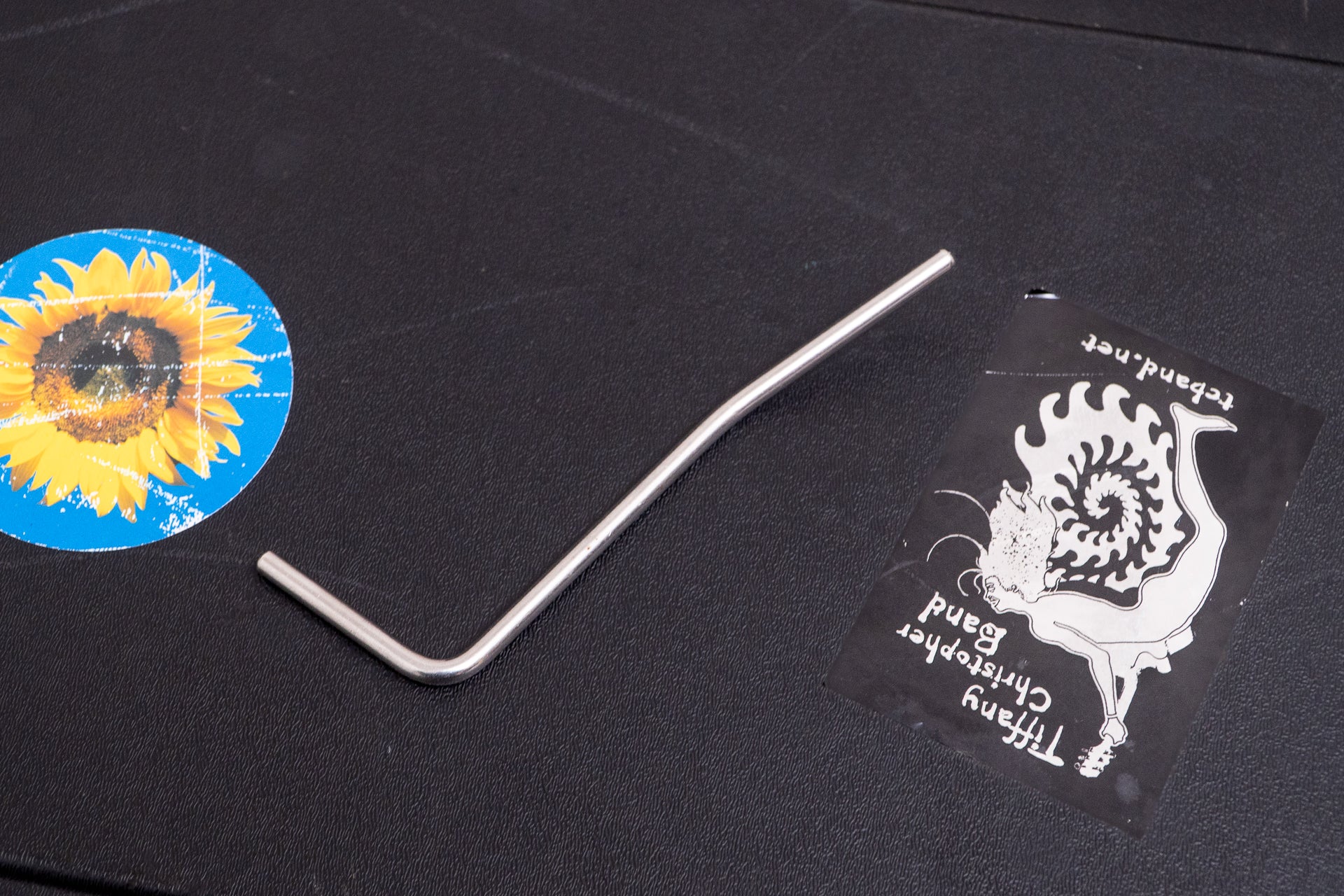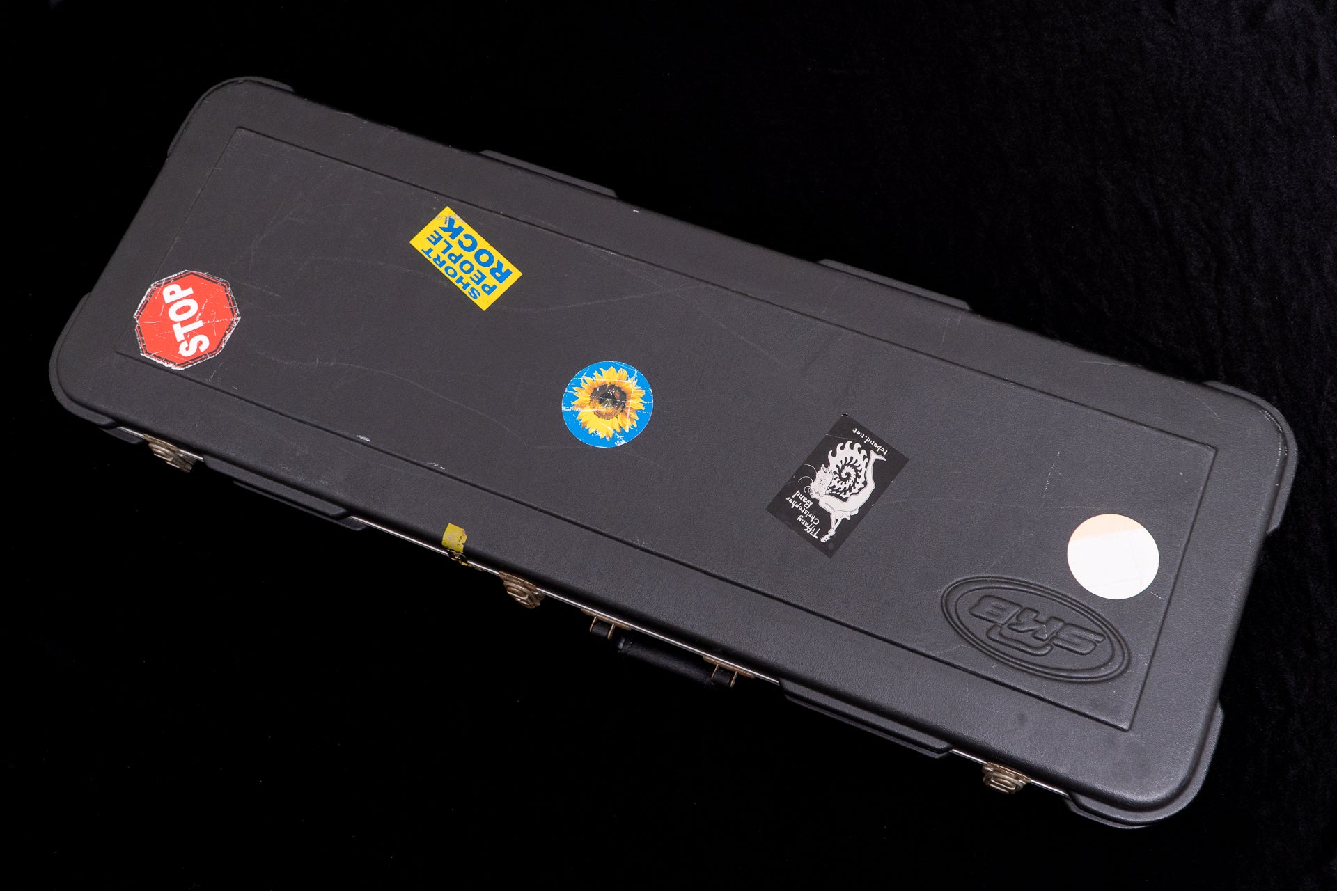 There are chips on the body top and near the output jack, and a black scratch is visible near the end pin.
