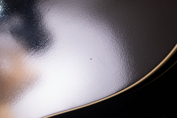 The body and finish show impact marks near the bridge pickup on the 1st string side of the body top, and another impact mark near the neck joint on the 6th string side.