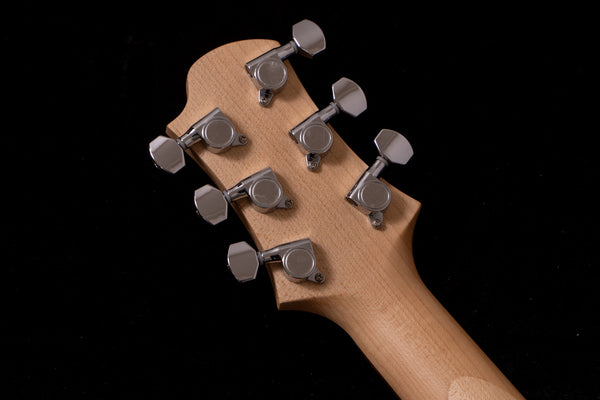 It offers modern playability with features like a contoured neck heel, a C-shaped neck profile, 24 frets, and stainless steel medium jumbo frets.